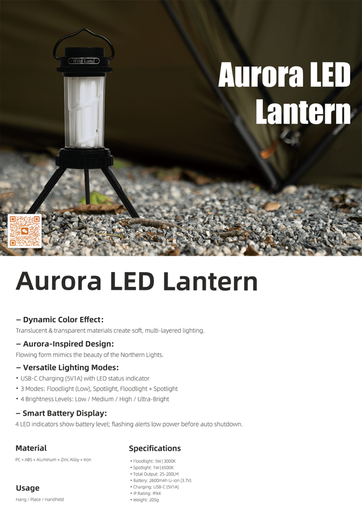 Illuminate your adventures with the Aurora LED Lantern, a perfect blend of style and functionality. Designed to reflect the mesmerizing beauty of the natural aurora, this lantern enhances your outdoor experiences with its stunning features.