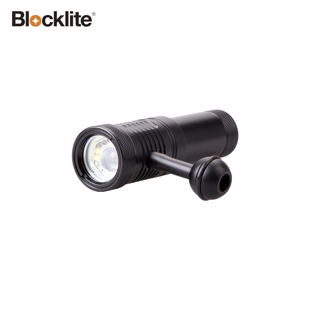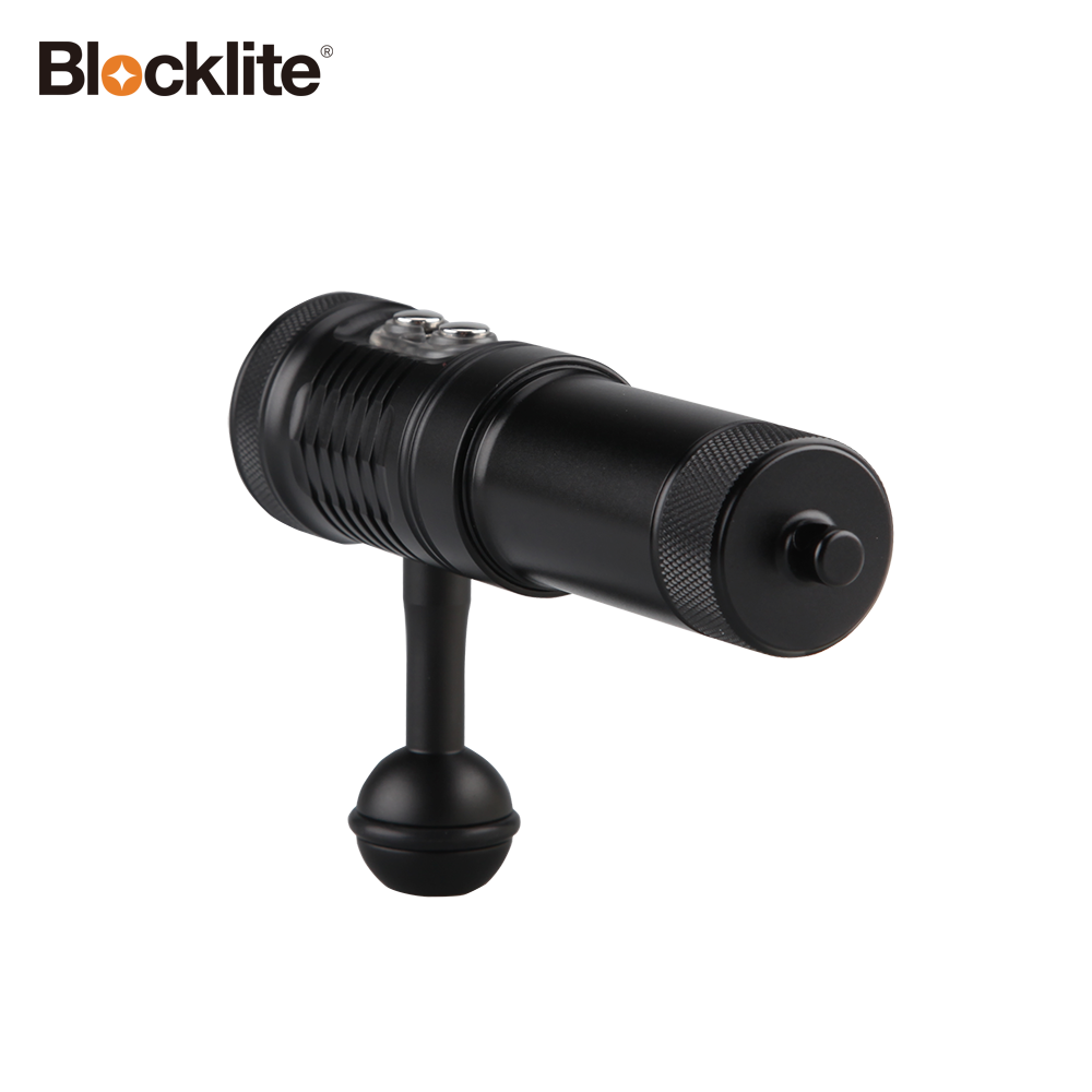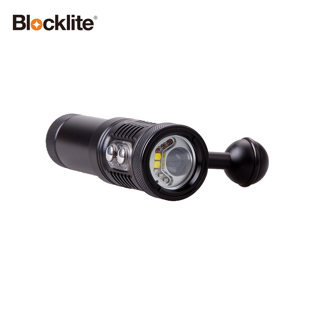 Blocklite V1 video dive light is specially designed for the underwater photographer. Max 2200 lumens. It features four types of light source within one light: Red, Blue, 110°white and 8°spot Cool white beam. Auto Flash-off function allows better control over lighting and prevents that annoying spot light from spoiling your picture perfect shots.