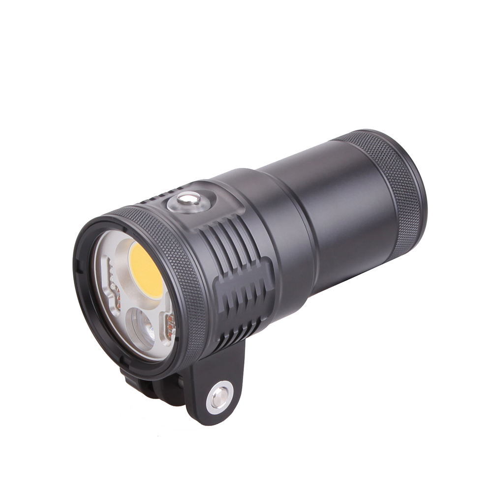Blocklite V3 is a high CRI neutral white video light for underwater photography. Max 6000 lumens. It features four types of light source within one light: Red, Blue, 110°white and 8°spot Cool white beam.